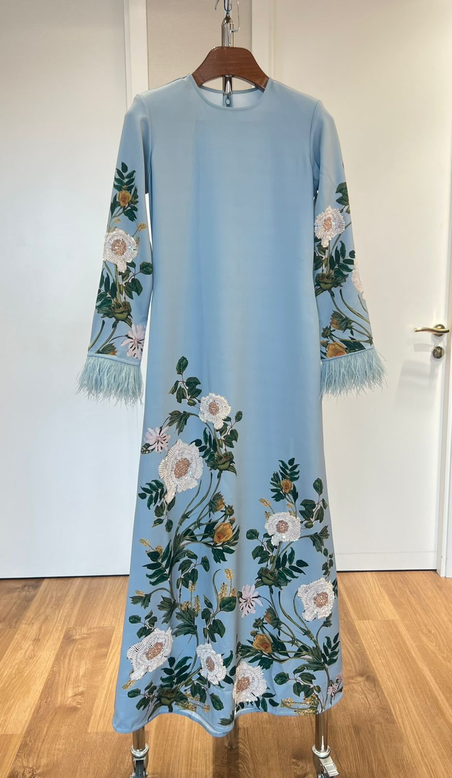 Grace yourself with this pink thick satin jalabiya adorned with intricate moti and beadwork. It is designed to reflect a regal and feminine charm.